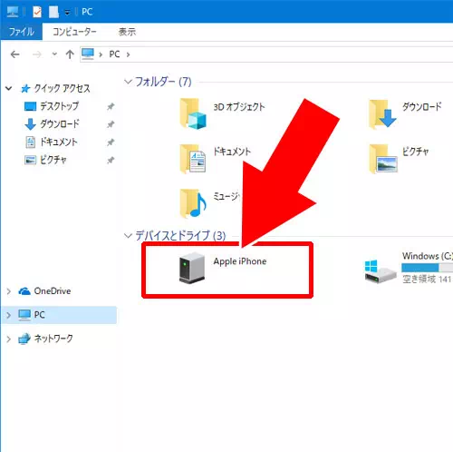 iphoneとPCをUSBで接続すれば、PCからスマホ内の写真や動画データを閲覧することができます。