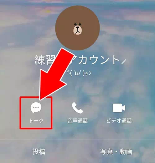 - 友だちのプロフィール画面が表示されるので『トーク』をタップ