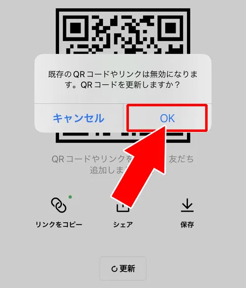 - 『QRコードを更新しますか?』という確認が表示されるので『OK』をタップ