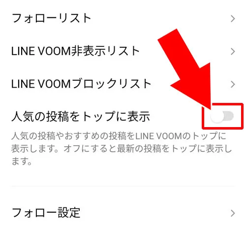 LINE VOOMで人気の投稿を表示しないような設定もできます。