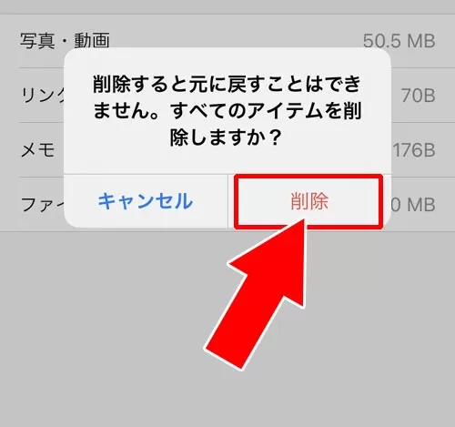 6:『すべてのアイテムを削除しますか?』という確認画面が表示されるので『削除』をタップ